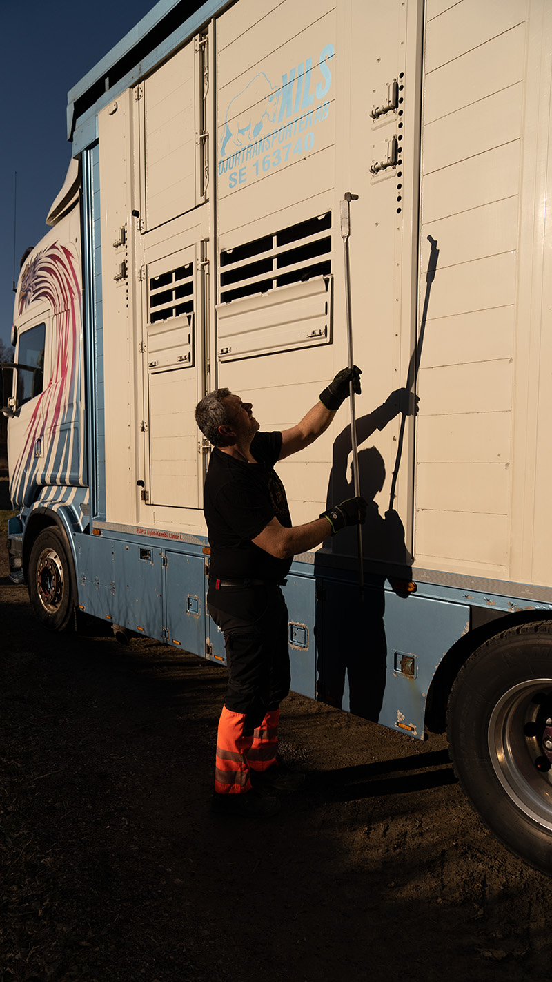 Det finns mycket teknisk utrustning i djurtransportbilarna och en förare bör kunna utföra enklare reparationer som till exempel att byta hydraulslangar.