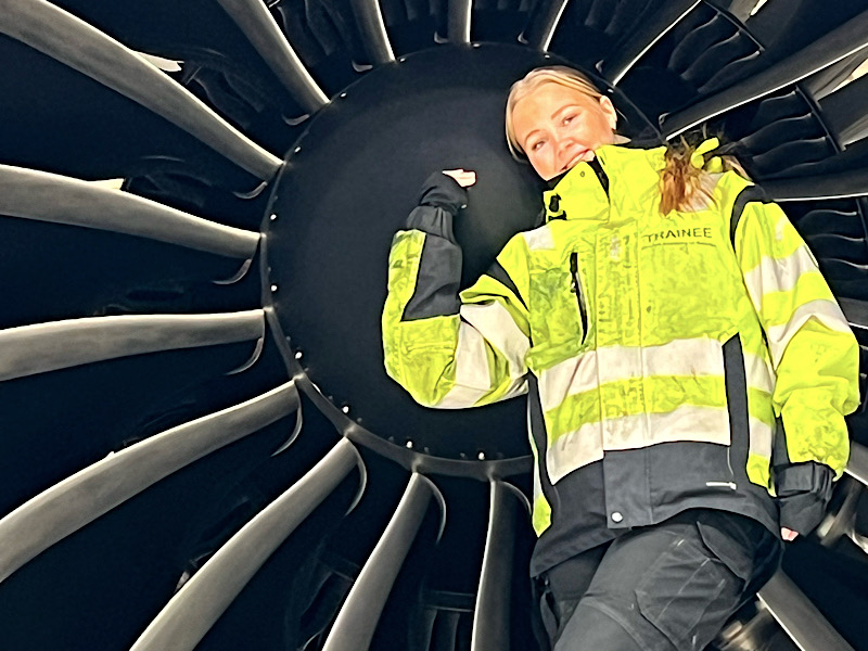 Elin Forsnabba var ambassadör när hon läste flygteknik på gymnasiet. Nu läser hon vidare till flygtekniker på yrkeshögskolan – och är återigen ambassadör.