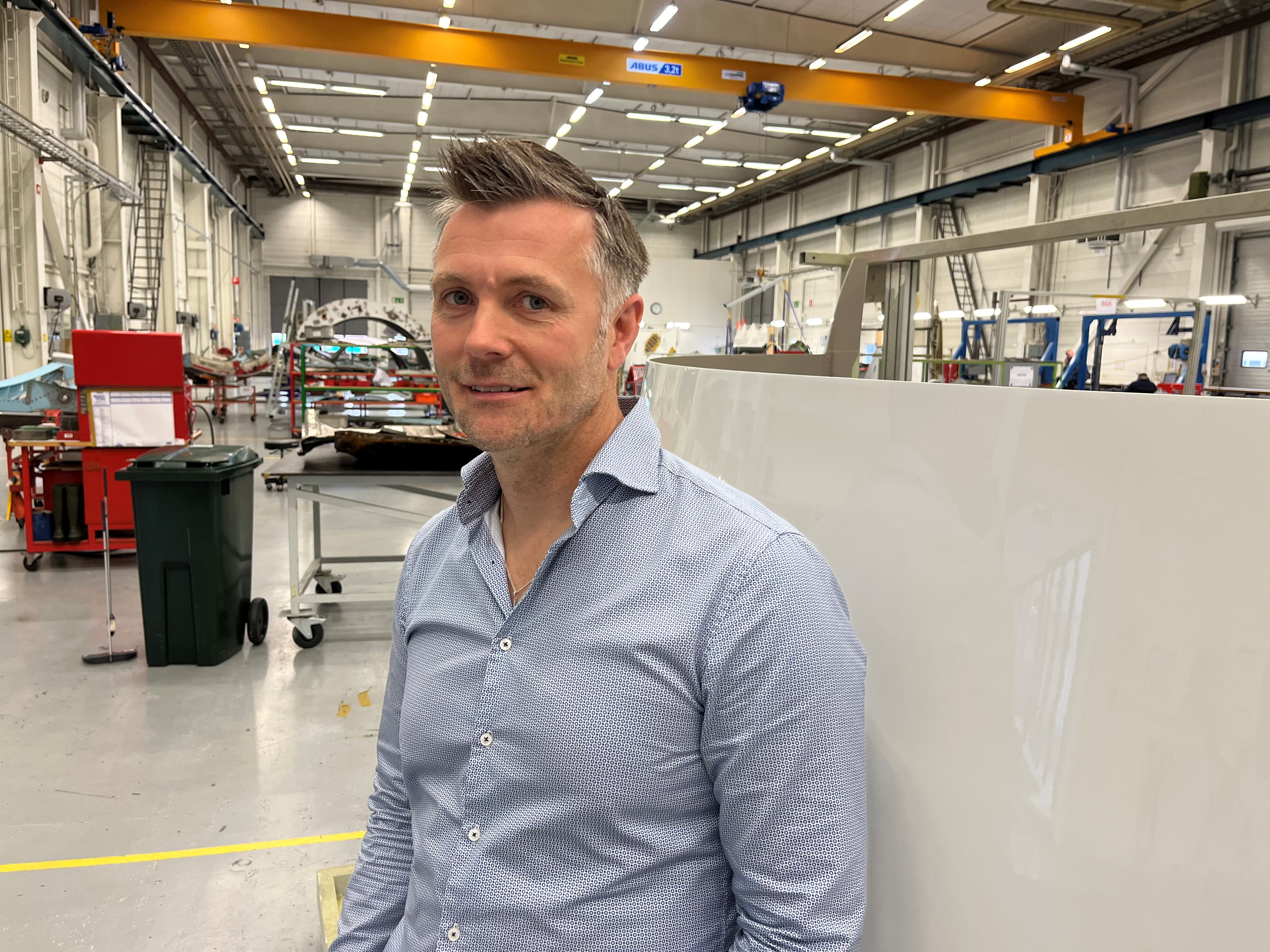– Nej, jag är så van, jag hör det knappt, säger han och skrattar. Han har arbetat som flygplåtslagare i 12 år och är vid det här laget specialiserad på helikoptrar. På Patria servar man och reparerar just polishelikoptrar och man arbetar även med norska försvarets helikoptrar.