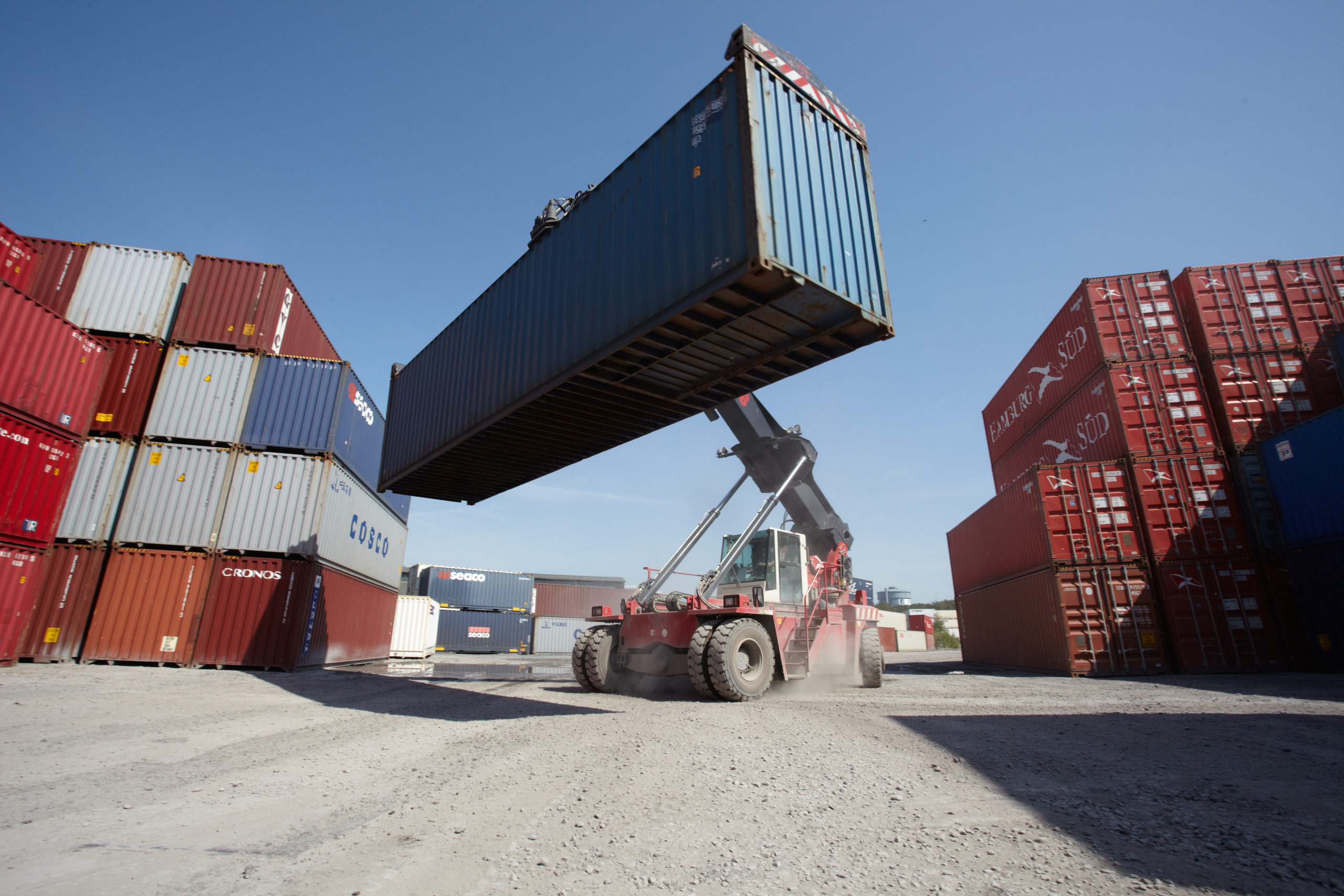 Föraren behöver omfattande kunskaper om gods, säkerhet, och arbetsmiljö. Några riskfaktorer är otillräcklig introduktion, bristande användning av lastsäkring och fallrisk vid klättring på containrar.