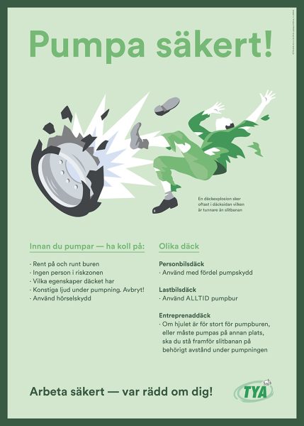 TYA har tagit fram en affisch som med fördel kan sättas upp i däckverkstaden. Den ger tips och råd till däckmontören inför pumpning av däck.