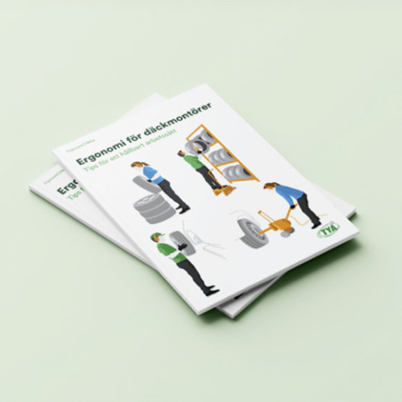 TYA har tagit fram en folder och två affischer som ger kunskap om risken för belastningsskador, hur vanliga arbetsmoment kan genomföras mer ergonomiskt och vilka hjälpmedel som underlättar i arbetet. De ger även tips på bra tränings- och rörlighetsövningar för dig som däckmontör.