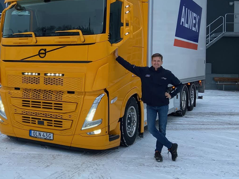 – Det är en fördel att alla vet hur det fungerar där ute och det skapar även en flexibilitet i företaget, säger ägaren Ola Bergqvist som precis avslutat ett pass i lastbilen.