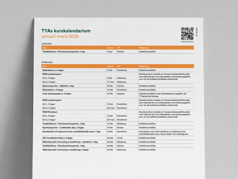 Vårt mål är att våra kurser ska ge stöd för företagens arbetsmiljöarbete, öka personalens yrkeskompetens och underlätta lärandet inom företagen. Vi erbjuder kurser som är inkluderat i företagets avgift till TYA eller subventionerade för anställda på TYA-anslutna företag. På vissa kurser kan även personal från företag som inte är anslutna till TYA delta i mån av plats och till ordinarie pris.