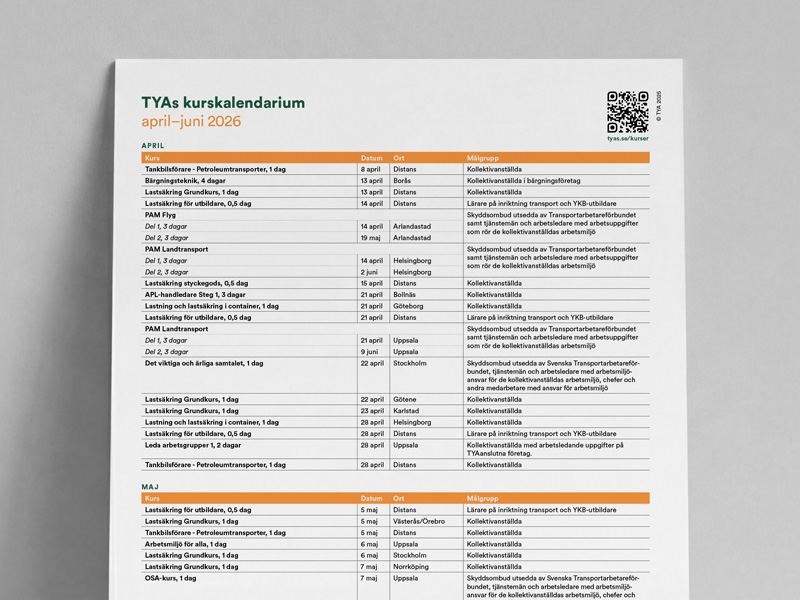 Flera av TYAs kurser kan under vissa förutsättningar genomföras på din arbetsplats. På de kurser där det är möjligt finns en ”Intresseanmälan om företagsförlagd kurs”.