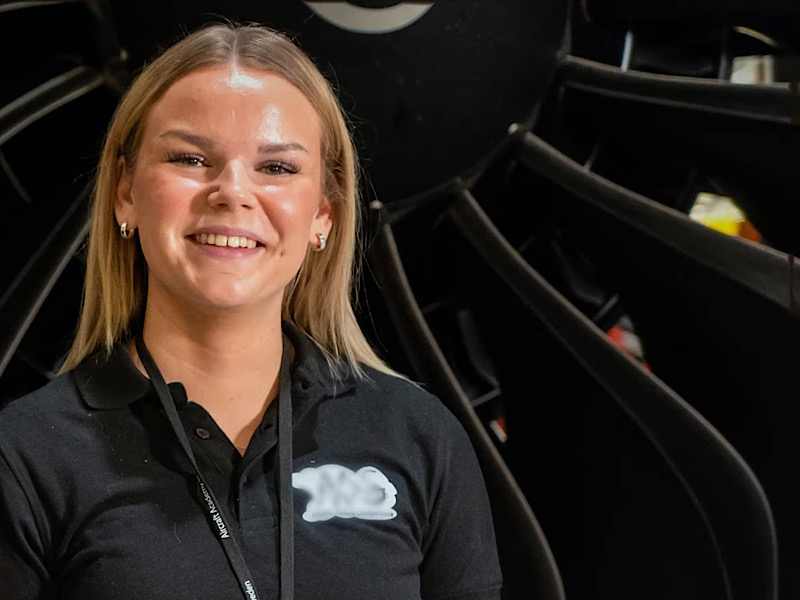 Elin Forsnabba var ambassadör när hon läste flygteknik på gymnasiet. Nu läser hon vidare till flygtekniker på yrkeshögskolan – och är återigen ambassadör.