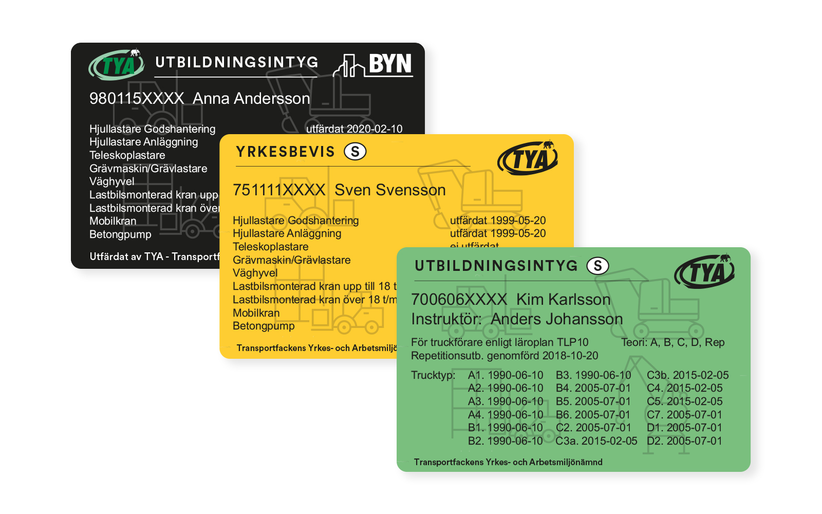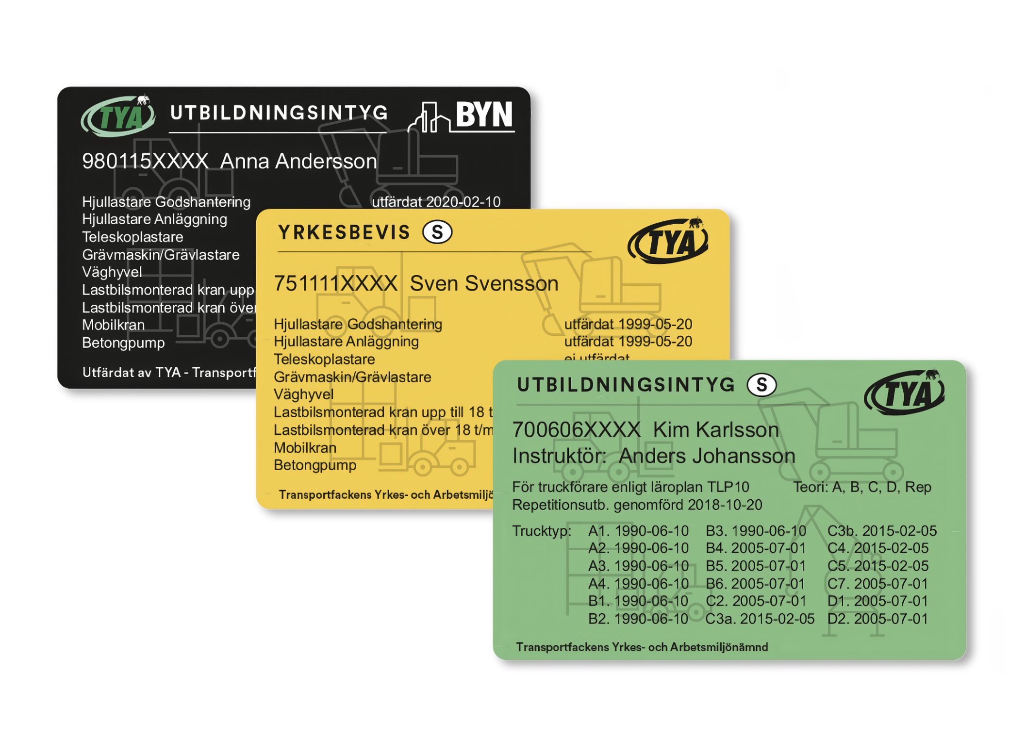 Du kan alltid logga in i TYAs truck- och maskinregister för att se vilka utbildningsintyg eller yrkesbevis som har utfärdats till dig.